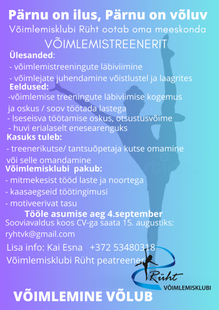 Rühmvõimlemine ja harrastusvõimlemine, akrobaatika, naiste võimlemine, laste võimlemine alates 3-ndast eluaastast